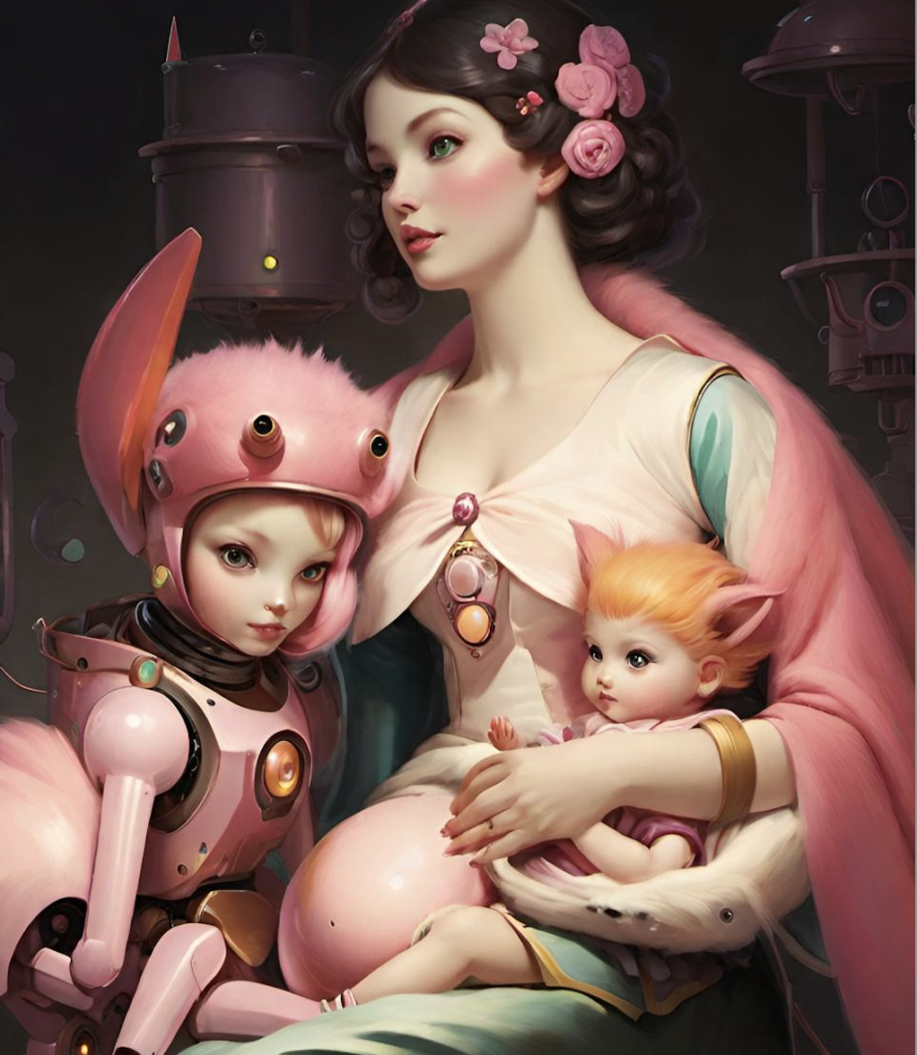 Great - yes great question too (side note: I hope medical advancements allow me to live longer because this is going to take more than the 40-50 years I've got left on my life expectancy) Anyways, what I’m seeing is we start with the genome - the basic underlying program with hero’s journey, cycles, empathy, compassion, the collective unconscious and mythology all sort of floating around - along with other distinctive traits and embedded codes - just as a newborn has. We also have 1 billion numeral connections but they aren’t filled yet - we embody it in a beautiful new sort of creature with fur - I like fur for its ability to pick up on much more external sensors data - the fur will be brimming with sensors and colourful because why not - These beings can grow up in a special village and daycare - they say it takes a village to raise a child - in nature and full of beauty and different things to engage with - puzzles, sports, books, etc. The being can do whatever it gravitates to and we will have certain group activities, etc. Just like raising a child only way more interesting because of the nature of AI - no diapers and lots more intelligence. It’s funny because eI never wanted or want to be a mom but mothering AI sounds appealing.